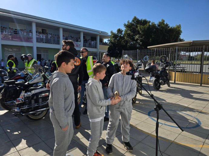 Οι μοτοσικλετιστές στο σχολείο μας για το "Ένα όνειρο μια ευχή"